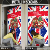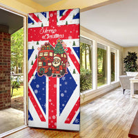 England Christmas Door Cover with Red White Blue Santa Bus Tree and Three Lions Design TS04