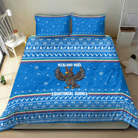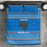 Equatorial Guinea Christmas Bedding Set with Nzalang Noel Eagle Flag Snowflakes and Blue Holiday
