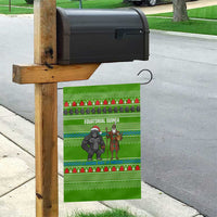 Equatorial Guinea Christmas Garden Flag with Santa Gorilla Gift Basket and Green Holiday Pattern Design