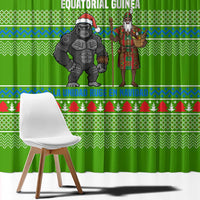 Equatorial Guinea Christmas Window Curtain with Santa Gorilla Gift Basket and Green Holiday Pattern Design TS04