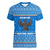 Equatorial Guinea Christmas Women V-Neck T-Shirt with Nzalang Noel Eagle Flag Snowflakes and Blue Holiday