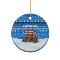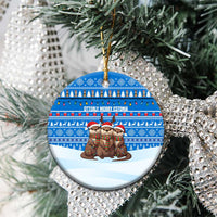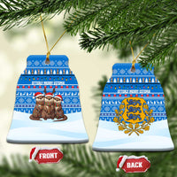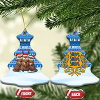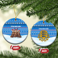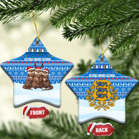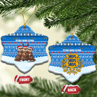 Estonia Christmas Ceramic Ornament with Santa Otters Lights Snowflakes and National Emblem on Blue Pattern