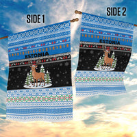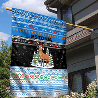 Estonia Christmas Garden Flag with Reindeer Gingerbread Snowflakes National Emblem and Winter Forest