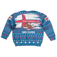 Faroe Islands Christmas Kid Ugly Christmas Sweater with Santa Riding Whale Faroe Flag and Blue Nordic Winter Pattern Design