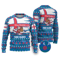 Faroe Islands Christmas Ugly Christmas Sweater with Santa Riding Whale Faroe Flag and Blue Nordic Winter Pattern Design