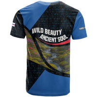 Faroe Islands T Shirt with Waterfall Nature Scene and Rune Pattern Design TS04