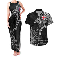 Faroe Islands Viking Ravens Couples Matching Tank Maxi Dress and Hawaiian Shirt Vegvisir Runes Pattern