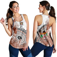 Fiji Tapa Women Racerback Tank White Fijian Masi Be Loved Hibiscus LT13