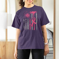 Firefighter Breast Cancer Awareness T Shirt For Women Fight For A Cure American Flag
