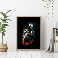 Flaming Skull Canvas Wall Art Celestial Riders with Angel Wings DT01