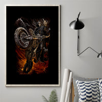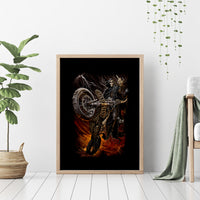 Flaming Skull Canvas Wall Art Death Angel Riding Motocycle DT01