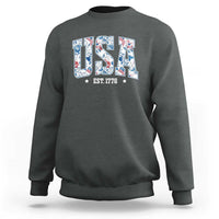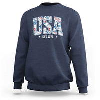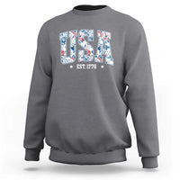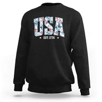Floral USA Sweatshirt Est 1776 Patriotic American Girl 4th of July