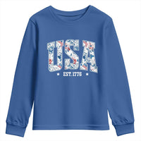 Floral USA Youth Sweatshirt Est 1776 Patriotic American Girl 4th of July TS10
