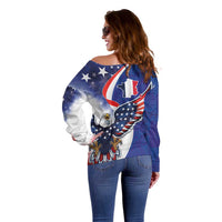 French American Heritage Month Off Shoulder Sweater USA Eagle and France Urban Paris National Flag Style LT03
