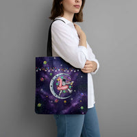 Funny Astronauts Sit On Flamingo Christmas Tote Bag Xmas Holiday Patterns
