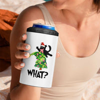 Funny Christmas Black Cat Lover Gifts 4 in 1 Can Cooler Tumbler Christmas Tree Over Cat What?