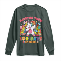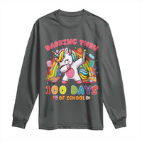 Funny Dabbing Thru 100 Days Of School Long Sleeve Shirt Dabbing Unicorn Rainbow