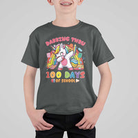 Funny Dabbing Thru 100 Days Of School T Shirt For Kid Dabbing Unicorn Rainbow TS11
