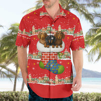 Funny Dachshund Dog Light Up Christmas Hawaiian Shirt Snowy Village Red Holiday Design