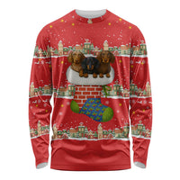 Funny Dachshund Dog Light Up Christmas Long Sleeve Shirt Snowy Village Red Holiday Design TS04
