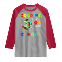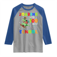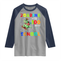 Funny Dinosaur Trex Roaring Into 100 Days Of School Raglan Shirt