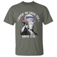 Funny George Washington T Shirt 4th Of July Sippin On Liber Tea Liberty American Flag 1776 TS10