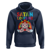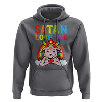 Funny Halloween Hoodie Satan Loves Me Rainbow Goat