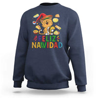 Funny Mexican Cat Christmas Sweatshirt Feliz Navidad Sombrero Kitty Xmas