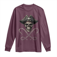 Funny Pirate Fishing Lover Long Sleeve Shirt Vintage Pirate Skull Hooks Fishing