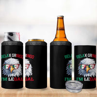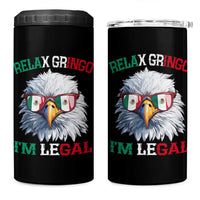 Funny Relax Gringo Im Legal 4 in 1 Can Cooler Tumbler Cinco De Mayo Mexican Immigrant Bald Eagle