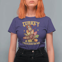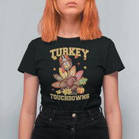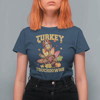Funny Turkey And Touchdowns T Shirt For Women Thanksgiving American Football Fall Season
