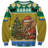 Gabon Christmas Sweatshirt with Pixel Art Elephant Santa Christmas Tree and Flag Colors Pattern