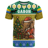 Gabon Christmas T Shirt with Pixel Art Elephant Santa Christmas Tree and Flag Colors Pattern