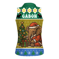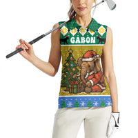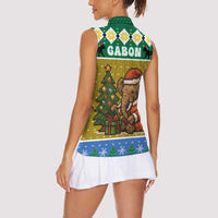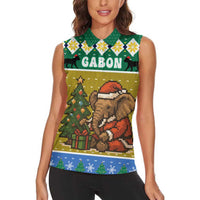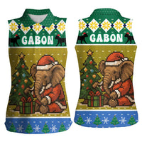 Gabon Christmas Women Sleeveless Polo Shirt with Pixel Art Elephant Santa Christmas Tree and Flag Colors Pattern TS04
