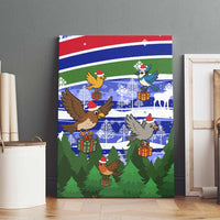 Gambia Christmas Canvas Wall Art with Santa Birds Gift Boxes Forest Scene and Snowflake Pattern Design