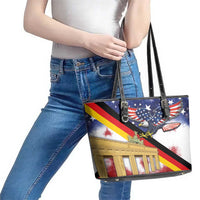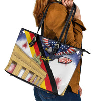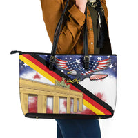 German American Heritage Month Leather Tote Bag United States Eagle and Brandenburg Gate with National Flag