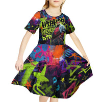 Graffiti Hip Hop Kid Short Sleeve Dress with Neon Bear and Street Artist Panda Design TS04