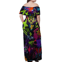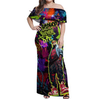 Graffiti Hip Hop Off Shoulder Maxi Dress with Neon Bear and Street Artist Panda Design TS04