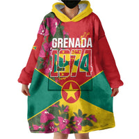 Grenada 1974 Wearable Blanket Hoodie Gwenad Map With Bougainvillea - Flag Color LT14