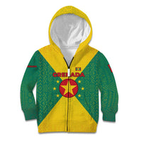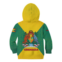 Grenada Coat of Arms Kid Hoodie with Yellow Green Flag Colors and Tribal Pattern Design TS04