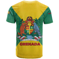 Grenada Coat of Arms T Shirt with Yellow Green Flag Colors and Tribal Pattern Design