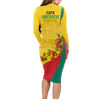 Grenada Independence Day Long Sleeve Bodycon Dress Bougainvillea Flowers Flag Style