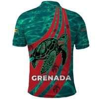 Grenada Sea Turtle Polo Shirt with Red Wave Stripes and Ocean Water Background