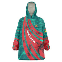 Grenada Sea Turtle Wearable Blanket Hoodie with Red Wave Stripes and Ocean Water Background