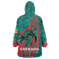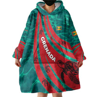 Grenada Sea Turtle Wearable Blanket Hoodie with Red Wave Stripes and Ocean Water Background TS04
