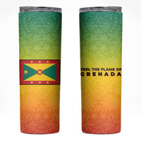Grenada Tribal Floral Pattern Skinny Tumbler with Rasta Gradient and Flame Motto Design
