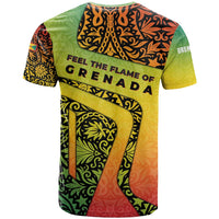 Grenada Tribal Floral Pattern T Shirt with Rasta Gradient and Flame Motto Design TS04