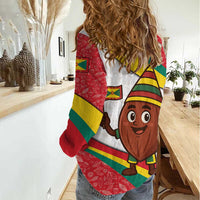 Grenada Women Casual Shirt with Cocoa Bean Mascot and National Flag Colors