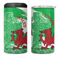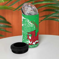 Grunge Green Wales 4 in 1 Can Cooler Tumbler Celtic Cross Welsh Red Dragon