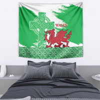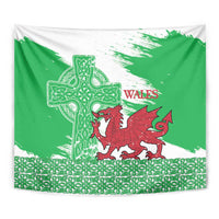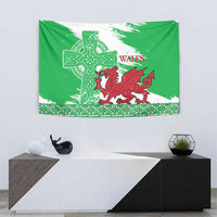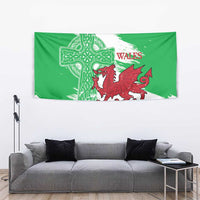 Grunge Green Wales Tapestry Celtic Cross Welsh Red Dragon